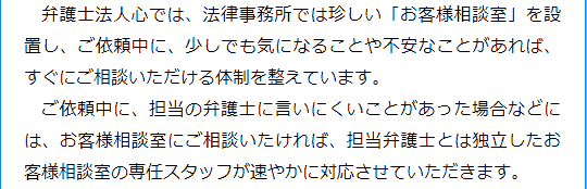 依頼者の方にアンケートをお願いする等してよりよいサービスの提供を目指しています。お客様相談室についてはこちらをご覧ください。