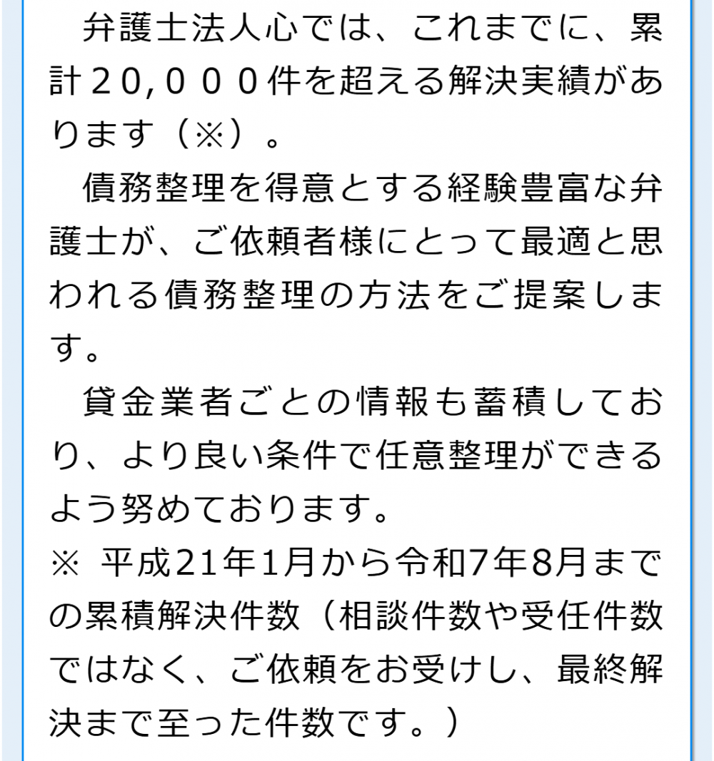 当法人の任意整理における解決事例の一部をご紹介しています。借金の状況は一人一人異なるためあくまで参考となりますが、ご覧いただければと思います。