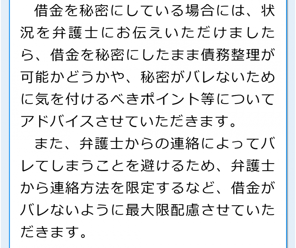 そのため任意整理で弁護士を選ぶ際は、借金の問題を多く取り扱っているかを確認していただくとよいかと思います。